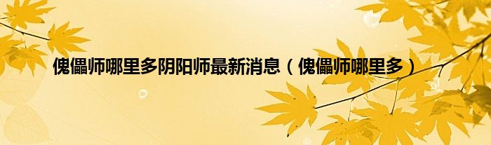 大家好,精选小编来为大家解答以上问题。傀儡师哪里多阴阳师最新消息,傀儡师哪里多很多人还不知道,现在让我们一起来看看吧!
