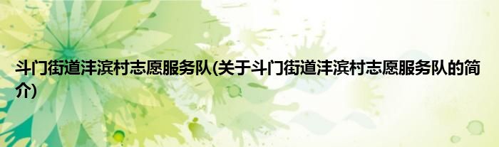 本文关于斗门街道沣滨村志愿服务队的简介就讲解完毕,希望对大家有所帮助。