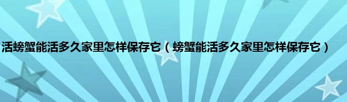 螃蟹能活多久家里怎样保存它