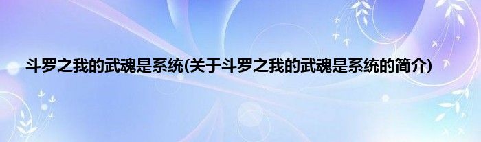 本文关于斗罗之我的武魂是系统的简介就讲解完毕,希望对大家有所帮助。