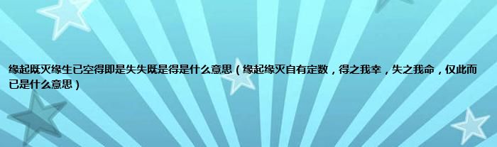 缘起既灭缘生已空得即是失失既是得是什么意思(缘起缘灭自有定数,得之我幸,失之我命,仅此而已是什么意思)