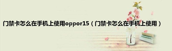 大家好,小常来为大家解答以上问题。门禁卡怎么在手机上使用oppor15,门禁卡怎么在手机上使用很多人还不知道,现在让我们一起来看看吧!