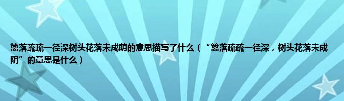 大家好,小常来为大家解答以上问题。篱落疏疏一径深树头花落未成荫的意思描写了什么,“篱落疏疏一径深,树头花落未成阴”的意思是什么很多人还不知道,现在让我们一起来看看吧!