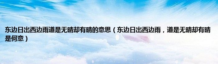 大家好,小常来为大家解答以上问题。东边日出西边雨道是无晴却有晴的意思,东边日出西边雨,道是无晴却有晴是何意很多人还不知道,现在让我们一起来看看吧!
