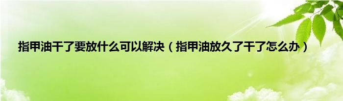 1、指甲油放久了之后变干可以在指甲油中加入甲油稀释液或者是透明指甲油、眼药水,将它们搅拌均匀,能够让指甲油恢复原本的状态,指甲油用完之后拧好盖子放在阴凉干燥的地方保存。