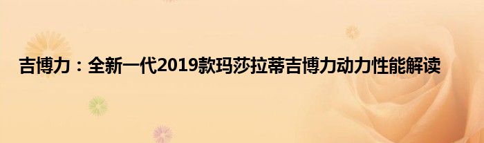 今天来分享一篇个人对吉博力:全新一代2019款玛莎拉蒂吉博力动力性能解读相关分析,众所周知,无论是在坊间民众,还是在汽车媒体的议论中,都是不错的,至于产品到底香不香,通过测试还是可以对吉博力:全新一代2019款玛莎拉蒂吉博力动力性能解读的产品力分析分析的,一起来看看吧: