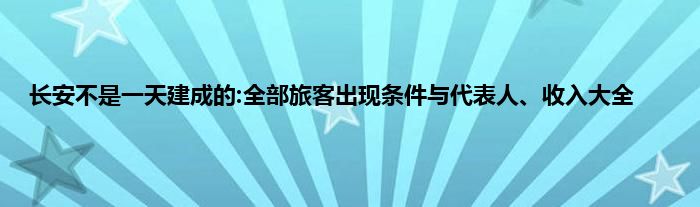 以上就是长安不是一天建成的:全部旅客出现条件与代表人、收入大全的推荐,相信通过长安不是一天建成的:全部旅客出现条件与代表人、收入大全这篇文章能帮到你,也欢迎对游戏很感兴趣小伙伴们一起来探讨。