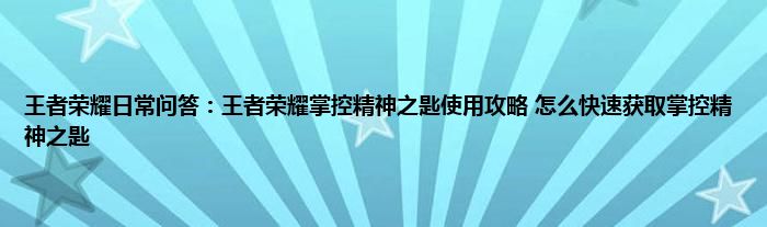 小编今天给各位玩家朋友们带来的是王者荣耀日常问答:王者荣耀掌控精神之匙使用攻略,怎么快速获取掌控精神之匙,有记得的玩家朋友吗?不记得也没有关系,小编已经帮助大家把王者荣耀日常问答:王者荣耀掌控精神之匙使用攻略,怎么快速获取掌控精神之匙找了出来,你只需要动动你的小手就可以轻松知道啦,快来瞧一瞧吧。