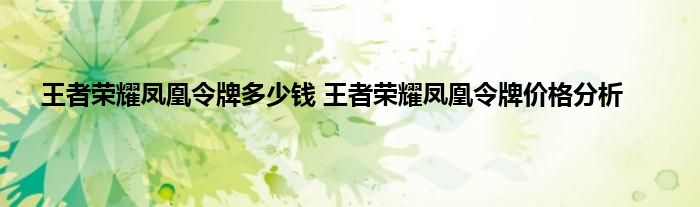 王者荣耀凤凰令牌价格介绍