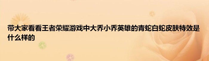 今天弟哥来聊聊一篇关于王者荣耀游戏中大乔小乔英雄的青蛇白蛇皮肤特效是什么样的的文章,游戏是很多人的选择,但是游戏玩多了也会身心疲惫,现在就为大家来简单介绍下王者荣耀游戏中大乔小乔英雄的青蛇白蛇皮肤特效是什么样的,希望对各位小伙伴们有所帮助。
