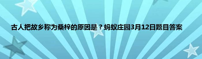 古人为什么把故乡称为桑梓呢,这是蚂蚁庄园3月12日的问题,很多小伙伴不知道答案,因为在古人的心目中,分枝再生能力极强的桑树和生长快速、材质优良的梓树都是生命之树,桑梓是有灵气的,那么具体答案是什么呢,下面就一起来看看吧。