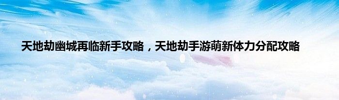 天地劫手游幽城再临近日开启公测,很多玩家闻风而至,加入到了游戏大军,但是新手玩家和一些参加过内测的老玩家在起步速度上相差太多,现在蚕豆君就给大家带来这个新手玩家如何规划体力,希望各位玩家在游戏里玩的开心。
