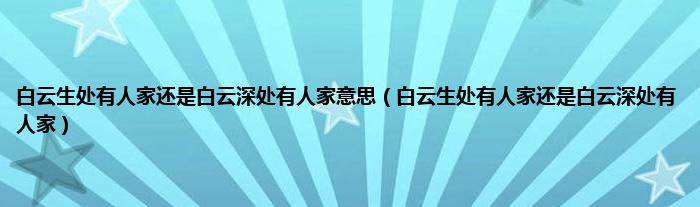 大家好,小科来为大家解答以上问题。白云生处有人家还是白云深处有人家意思,白云生处有人家还是白云深处有人家很多人还不知道,现在让我们一起来看看吧!