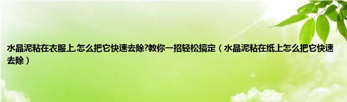 大家好,小科来为大家解答以上问题。水晶泥粘在衣服上,怎么把它快速去除?教你一招轻松搞定,水晶泥粘在纸上怎么把它快速去除很多人还不知道,现在让我们一起来看看吧!