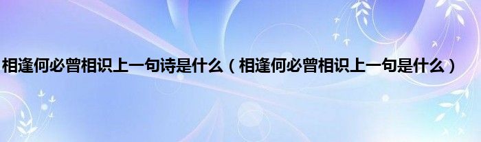 大家好,小科来为大家解答以上问题。相逢何必曾相识上一句诗是什么,相逢何必曾相识上一句是什么很多人还不知道,现在让我们一起来看看吧!