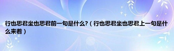 大家好,小科来为大家解答以上问题。行也思君坐也思君前一句是什么?,行也思君坐也思君上一句是什么来着很多人还不知道,现在让我们一起来看看吧!