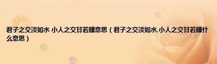 君子之交淡如水 小人之交甘若醴意思(君子之交淡如水,小人之交甘若醴什么意思)