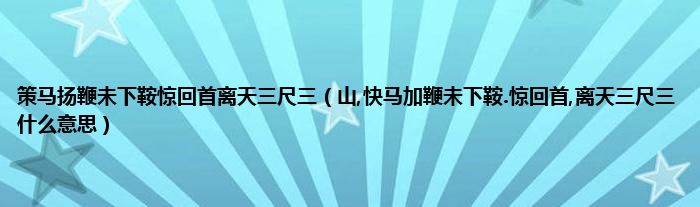 大家好,小科来为大家解答以上问题。策马扬鞭未下鞍惊回首离天三尺三,山,快马加鞭未下鞍.惊回首,离天三尺三什么意思很多人还不知道,现在让我们一起来看看吧!