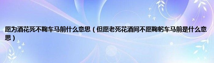 大家好,小科来为大家解答以上问题。愿为酒花死不鞠车马前什么意思,但愿老死花酒间不愿鞠躬车马前是什么意思很多人还不知道,现在让我们一起来看看吧!