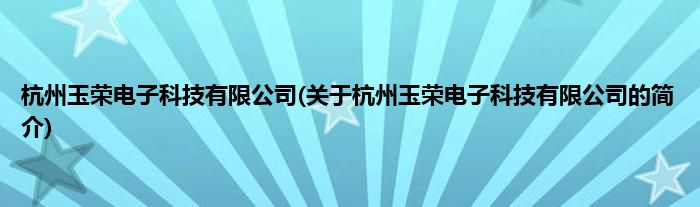 本文关于杭州玉荣电子科技有限公司的简介就讲解完毕,希望对大家有所帮助。