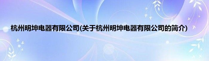 本文关于杭州明坤电器有限公司的简介就讲解完毕,希望对大家有所帮助。