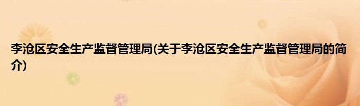 大家好,李沧区安全生产监督管理局,关于李沧区安全生产监督管理局的简介很多人还不知道,现在让我们一起来看看吧!