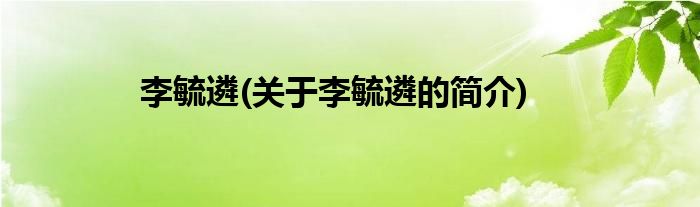 本文关于李毓遴的简介就讲解完毕,希望对大家有所帮助。