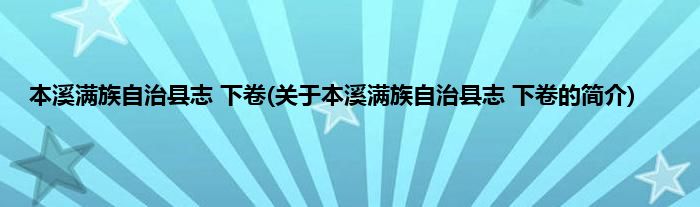 大家好,本溪满族自治县志 下卷,关于本溪满族自治县志 下卷的简介很多人还不知道,现在让我们一起来看看吧!