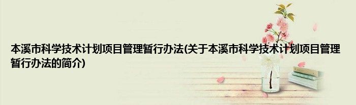 本文关于本溪市科学技术计划项目管理暂行办法的简介就讲解完毕,希望对大家有所帮助。