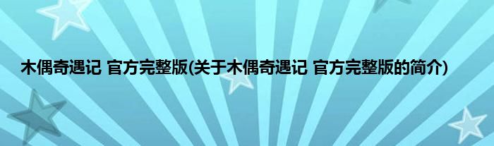 木偶奇遇记 官方完整版(关于木偶奇遇记 官方完整版的简介)