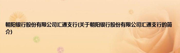 本文关于朝阳银行股份有限公司汇通支行的简介就讲解完毕,希望对大家有所帮助。