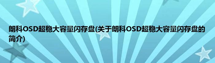 本文关于朗科OSD超稳大容量闪存盘的简介就讲解完毕,希望对大家有所帮助。
