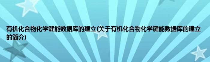 本文关于有机化合物化学键能数据库的建立的简介就讲解完毕,希望对大家有所帮助。