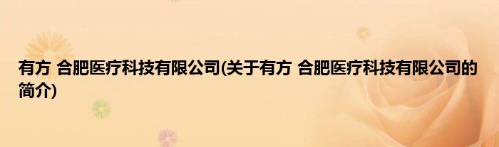 本文关于有方 合肥医疗科技有限公司的简介就讲解完毕,希望对大家有所帮助。