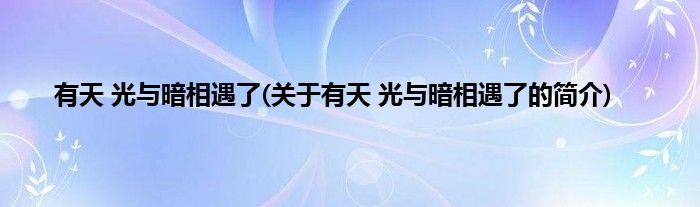 本文关于有天,光与暗相遇了的简介就讲解完毕,希望对大家有所帮助。