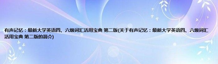 本文关于有声记忆:最新大学英语四、六级词汇活用宝典 第二版的简介就讲解完毕,希望对大家有所帮助。
