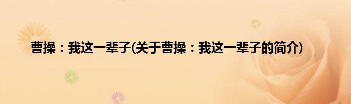 大家好,曹操:我这一辈子,关于曹操:我这一辈子的简介很多人还不知道,现在让我们一起来看看吧!