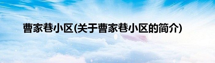 大家好,曹家巷小区,关于曹家巷小区的简介很多人还不知道,现在让我们一起来看看吧!