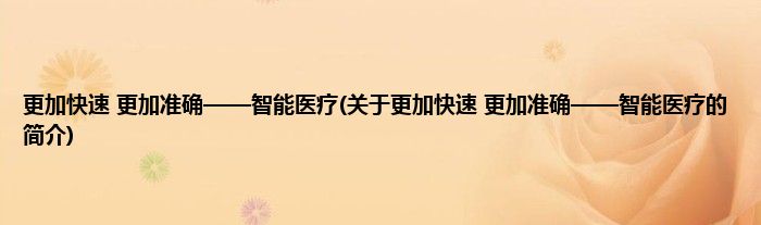 更加快速 更加准确——智能医疗(关于更加快速 更加准确——智能医疗的简介)