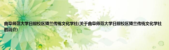 1、 曲阜师范大学日照校区猗兰传统文化学社,简称猗兰学社,成立于2007年。