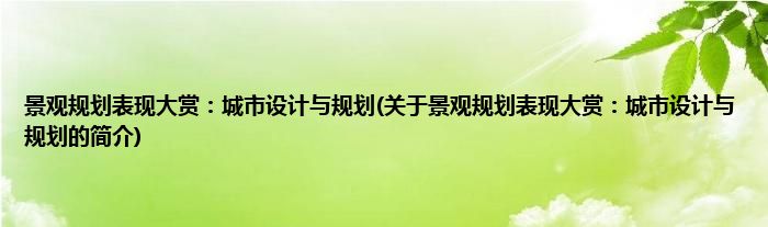 大家好,景观规划表现大赏:城市设计与规划,关于景观规划表现大赏:城市设计与规划的简介很多人还不知道,现在让我们一起来看看吧!