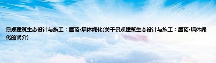 本文关于景观建筑生态设计与施工:屋顶·墙体绿化的简介就讲解完毕,希望对大家有所帮助。