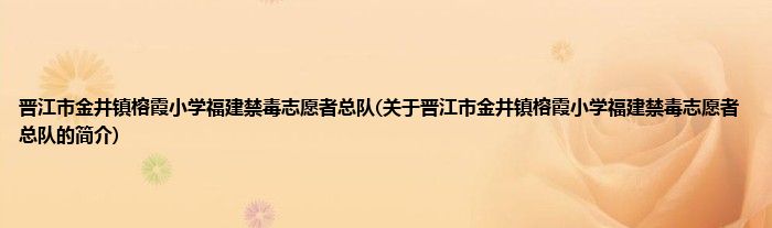 本文关于晋江市金井镇榕霞小学福建禁毒志愿者总队的简介就讲解完毕,希望对大家有所帮助。
