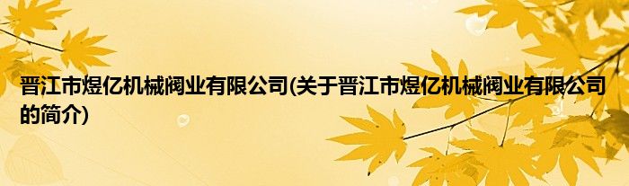 本文关于晋江市煜亿机械阀业有限公司的简介就讲解完毕,希望对大家有所帮助。