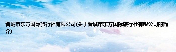 大家好,晋城市东方国际旅行社有限公司,关于晋城市东方国际旅行社有限公司的简介很多人还不知道,现在让我们一起来看看吧!