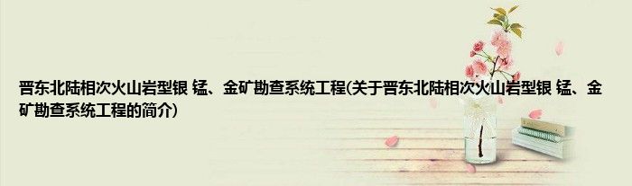 本文关于晋东北陆相次火山岩型银 锰、金矿勘查系统工程的简介就讲解完毕,希望对大家有所帮助。