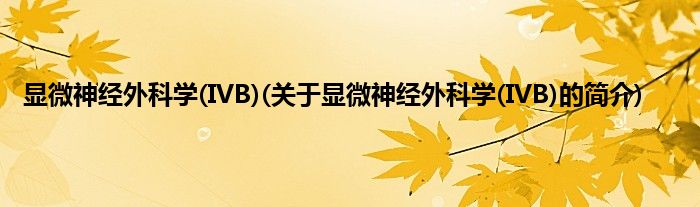 大家好,显微神经外科学,IVB,关于显微神经外科学,IVB的简介很多人还不知道,现在让我们一起来看看吧!