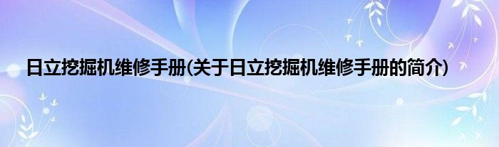 本文关于日立挖掘机维修手册的简介就讲解完毕,希望对大家有所帮助。