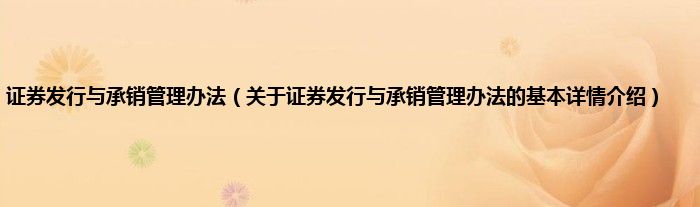 本文关于证券发行与承销管理办法的基本详情介绍就讲解完毕,希望对大家有所帮助。