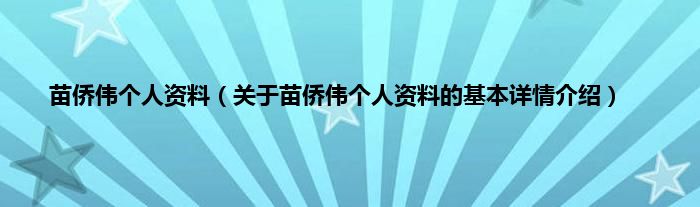本文关于苗侨伟个人资料的基本详情介绍就讲解完毕,希望对大家有所帮助。